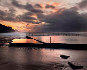 The sky was ominous but broke in time for the golden sunrise rays to beam across Wombarra Pool.